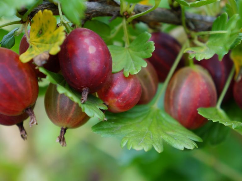 Anbau: Stachelbeeren werden an einem sonnigen Standort in feuchten, durchlässigen Boden gepflanzt. Ein leichter Rückschnitt wird empfohlen, da die Früchte bei einer zu reichhaltigen Ernte zum Zerbröckeln neigen.