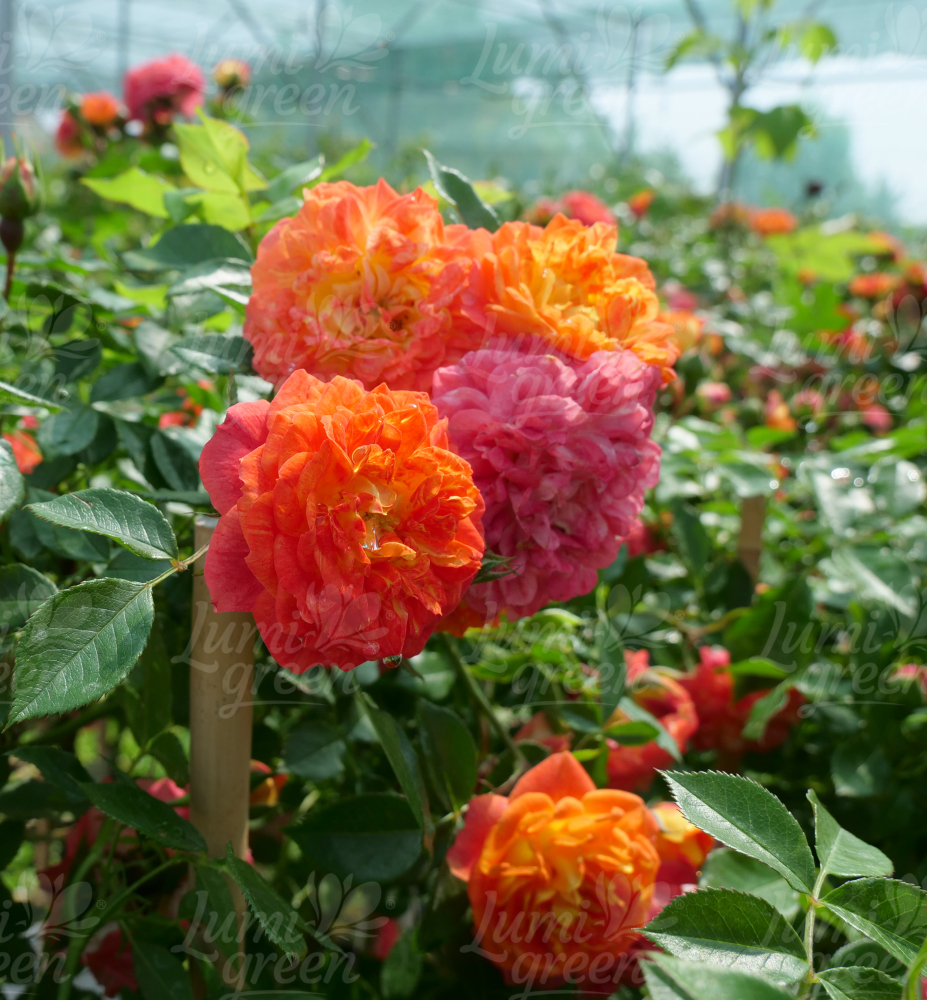Eigenschaften:Die Sorte „CARMEN SCARLET®“ ist die farbenfrohste der Scarlet Rose-Serie. Die Blüten sind in leuchtenden Orange-Kirschfarben gehalten. Sie haben dicht gefaltete Blütenblätter. Diese Sorte zeichnet sich durch unermüdliche Blüte und gute Gesundheit aus. Sie wurde 2013 gezüchtet.