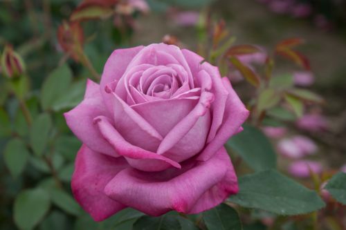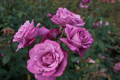 Eine wunderschöne, duftende, reichblühende Rose mit lila-rosa Blüten.