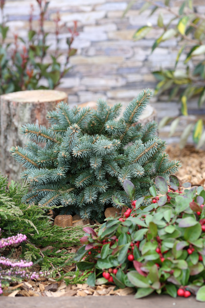 Eigenschaften: Die Stach-Fichte´GLAUCA GLOBOSA‘ ist eine kompakte, kugelförmige Sorte mit auffälligen blaugrauen Nadeln. Sie wächst langsam und erreicht eine Höhe und Breite von etwa 1 m. Die Pflanze eignet sich hervorragend für Steingärten oder den vorderen Teil des Gartens, wo sie das ganze Jahr über dekorativ wirkt. Auch in Kombination mit Heidepflanzen oder Bodendeckern sticht sie hervor. Sie kann zudem in Töpfen auf Balkon oder Terrasse kultiviert werden.