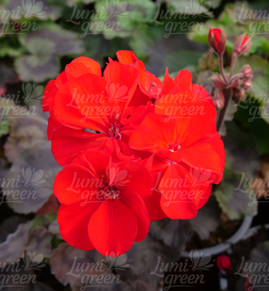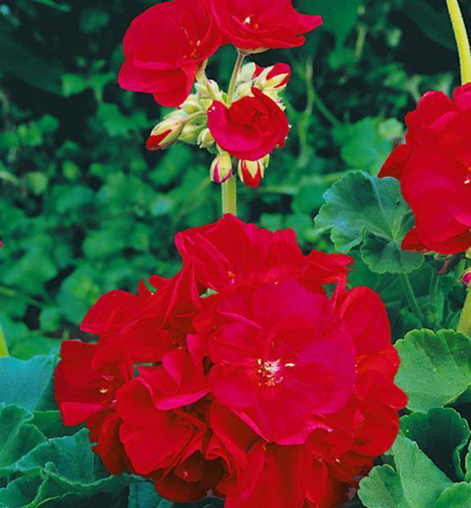 Elegante Geranie mit unwiderstehlichen tiefroten Blüten und dekorativen Blättern.