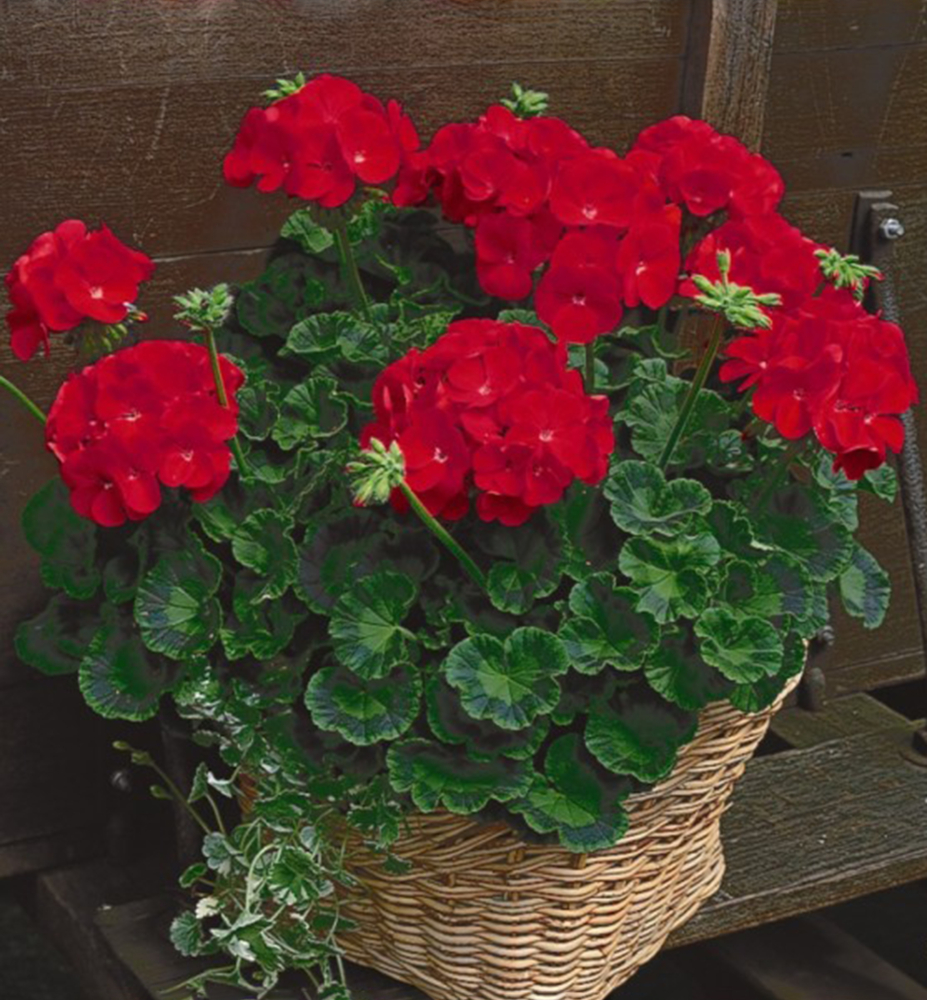 Eigenschaften: Die Geranie ´ABELINA‘ besticht durch ihre wunderschönen tiefroten Blüten. Sie blüht sehr üppig, die Blüte setzt mittelfrüh ein. Über dem dekorativen Laub erscheinen auffällige, kugelförmige Blütenstände. Die Blätter sind dunkelgrün mit einem markanten violetten Muster. Sie haben eine regelmäßige, runde Form und einen gezackten Rand.