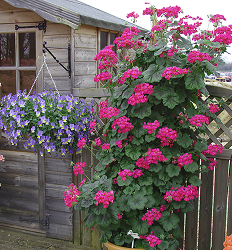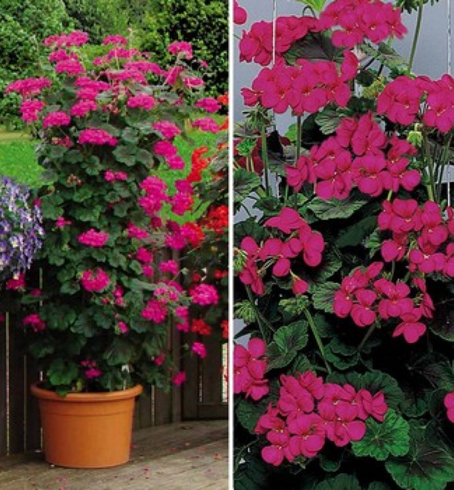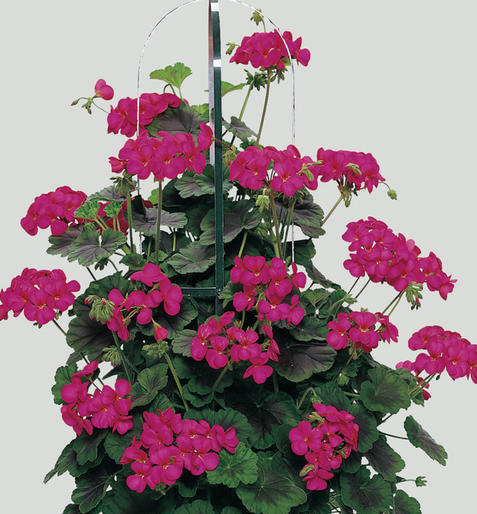 Eigenschaften: Die Geranie ´ANTIK VIOLET´ ist eine schnell wachsende, aufrechte Sorte, die mit Hilfe einer Stütze eine einzigartige Blütensäule oder eine dekorative Blütenpyramide bildet. Von April bis zum ersten Frost blüht sie üppig und zuverlässig. Sie begeistert mit rosa-violetten Blüten und runden, dunkelgrünen Blättern.