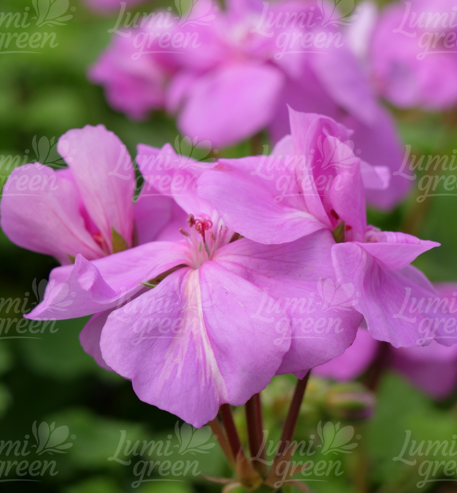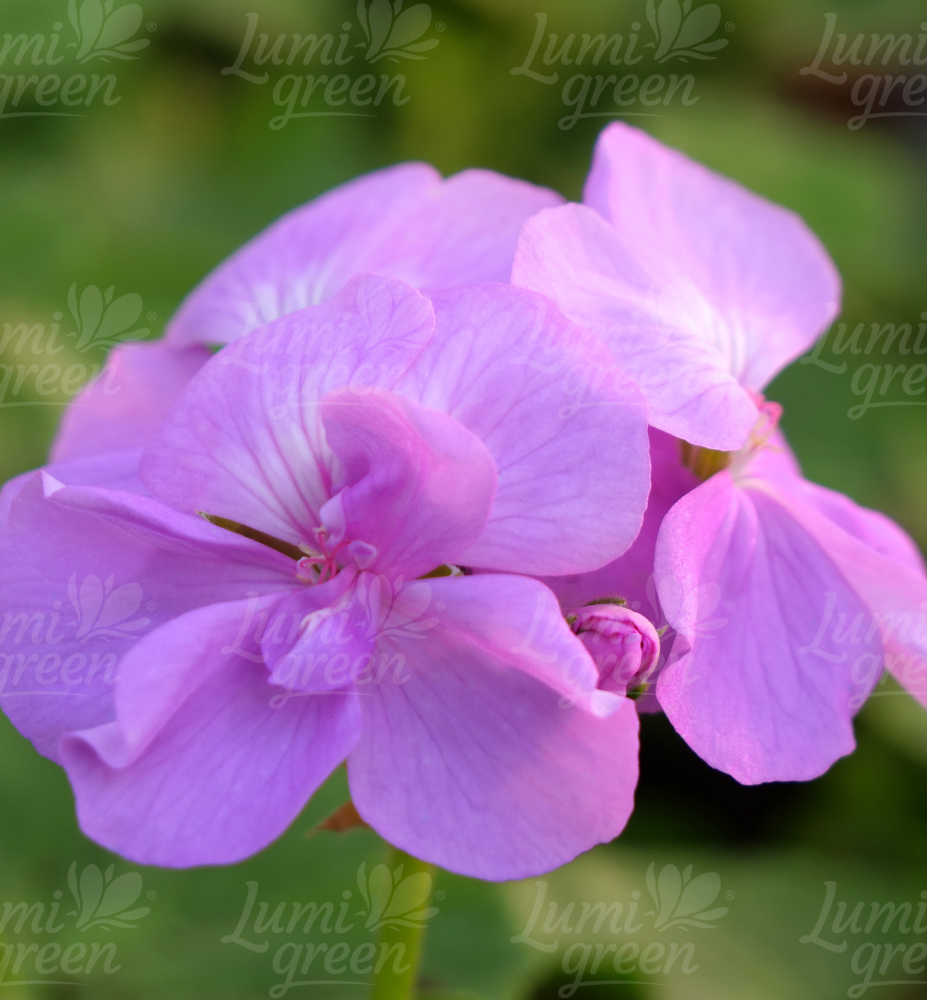 Neue, elegante Geranie mit großen lavendelfarbenen Blüten und weißer Mitte.
