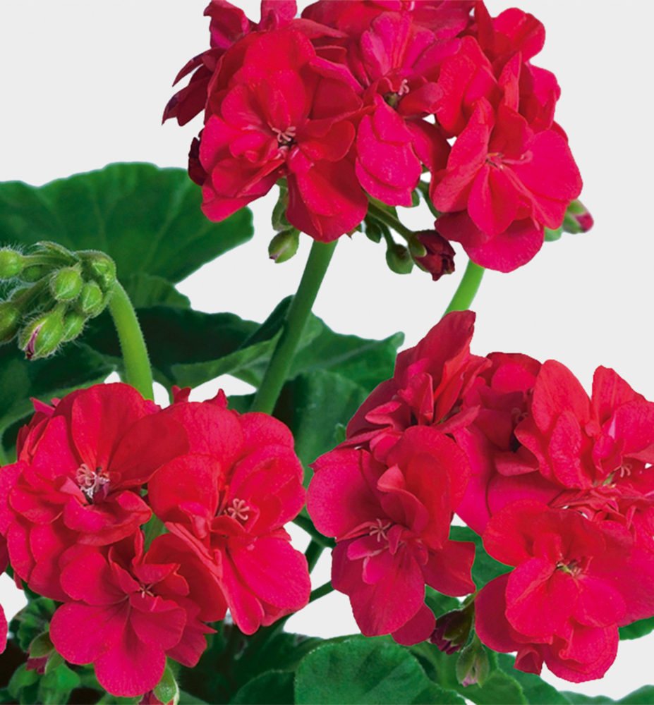 Anbau: Geranien gedeihen am besten an einem sonnigen Standort, wo sie den ganzen Sommer über üppig blühen. Für die Pflanzung empfiehlt sich ein hochwertiges Substrat für Balkonpflanzen. Bei Standorten mit natürlichem Niederschlag sollte eine dünne Schicht Perlit oder Blähton auf den Topfboden gegeben werden, um Staunässe zu vermeiden. Die Pflanzen benötigen regelmäßiges, aber mäßiges Gießen und wöchentlich Dünger für Balkonpflanzen.