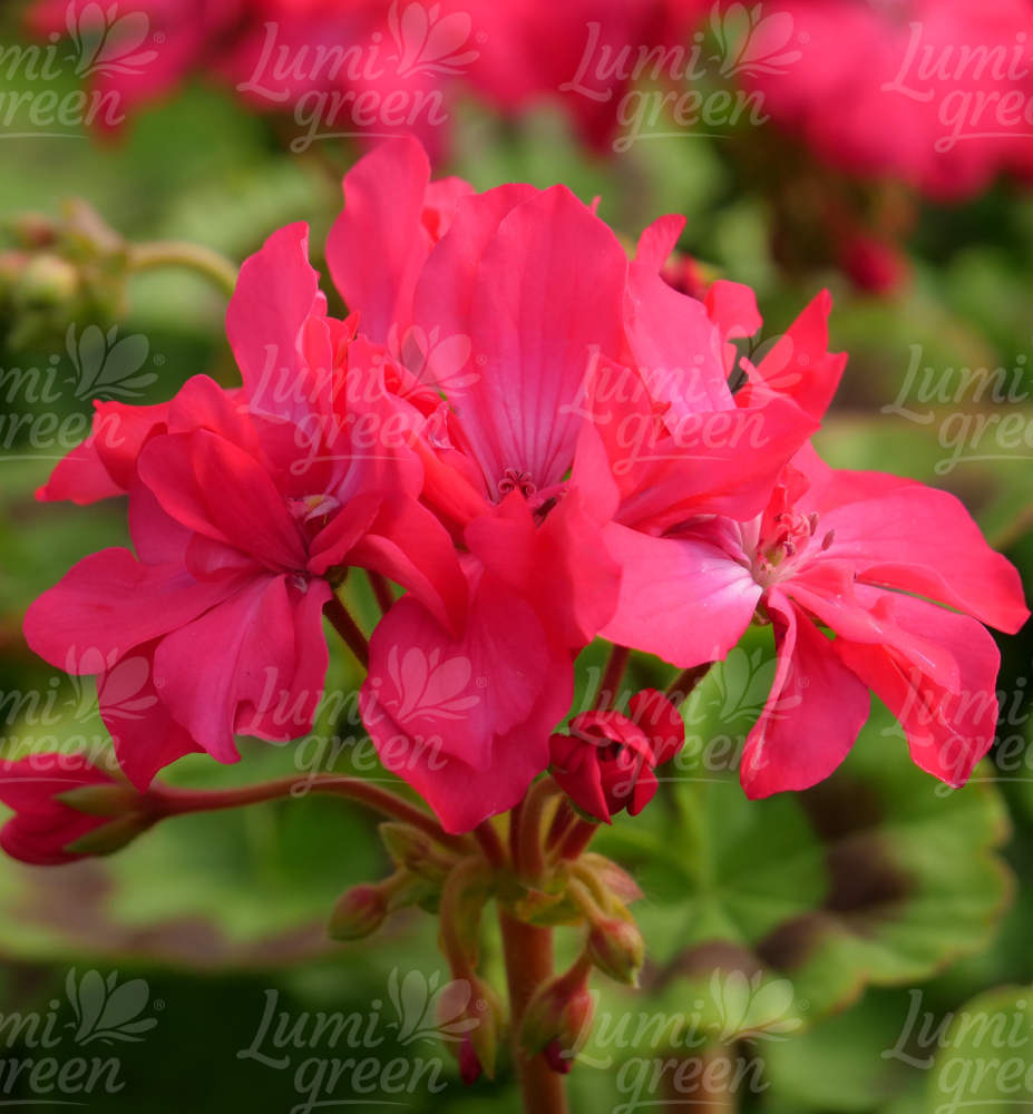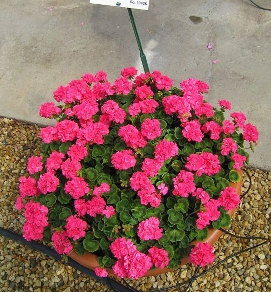 Kompakte, aufrecht wachsende Geranie mit üppigen, tiefrosa Blüten.