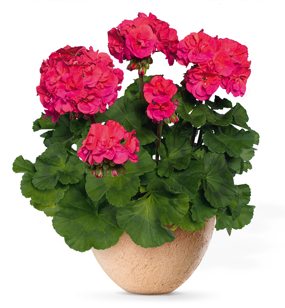 Anbau: Geranien gedeihen am besten an einem sonnigen Standort, wo sie den ganzen Sommer über üppig blühen. Für die Pflanzung empfiehlt sich ein hochwertiges Substrat für Balkonpflanzen. Bei Standorten mit natürlichem Niederschlag sollte eine dünne Schicht Perlit oder Blähton auf den Topfboden gegeben werden, um Staunässe zu vermeiden. Die Pflanzen benötigen regelmäßiges, aber mäßiges Gießen und wöchentlich Dünger für Balkonpflanzen. Sie reagieren empfindlich auf zu nasses Substrat.