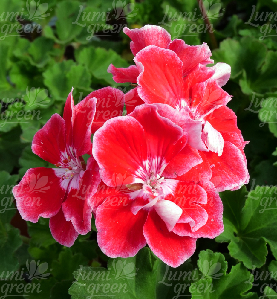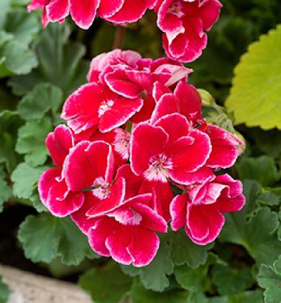 Eigenschaften: Die Stehend Geranie ´SPANISH WINE® RED´ bildet große, rote Blüten mit einem hellrosa Rand an jedem Blütenblatt.