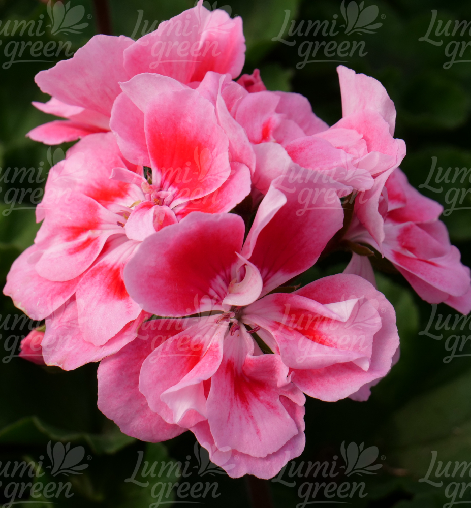 Bezaubernde Geranie mit großen rosa Blüten und leuchtenden Rändern.