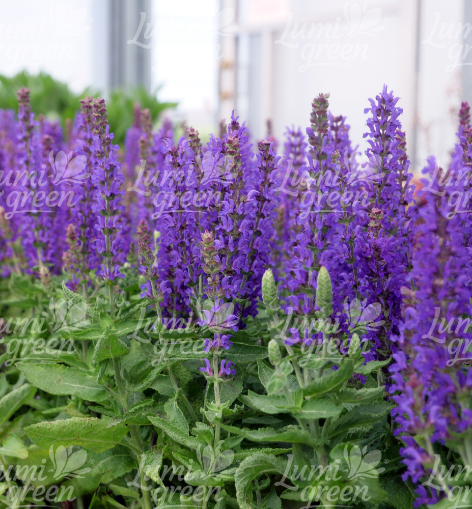 Eigenschaften: Die preisgekrönte, großblütige Salbei-Sorte ´PURPLE RIANNE´ stammt aus den Niederlanden. Sie ist eine gezüchtete Variante des ursprünglichen Kultivars ‚Rianne‘, mit dem sie die kompakte Wuchsform teilt, jedoch etwas höher und robuster ist. Sie erreicht eine Höhe von etwa 35–40 cm und bildet dichte Horste mit dunkelgrünen Blättern. Aus den attraktiven purpur-violetten Knospen entwickeln sich sattviolette Blüten. Die Blütezeit erstreckt sich von Mai bis Juni und bedeckt fast die gesamte Länge der festen, aufrechten Stängel. Nach der ersten Blüte folgt häufig eine zweite Blüte, die zwar weniger üppig, aber weiterhin dekorativ ist. Besonders schön wirkt sie, wenn mehrere Pflanzen in größeren Gruppen zusammen mit Ziergräsern und blühenden Stauden gepflanzt werden.