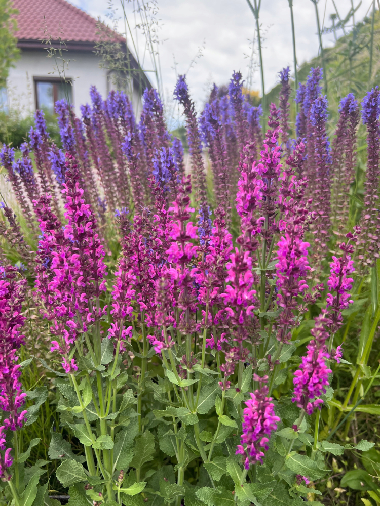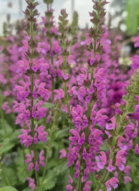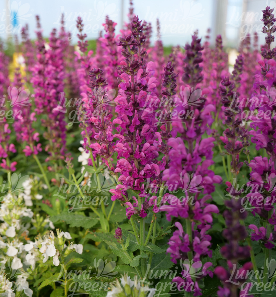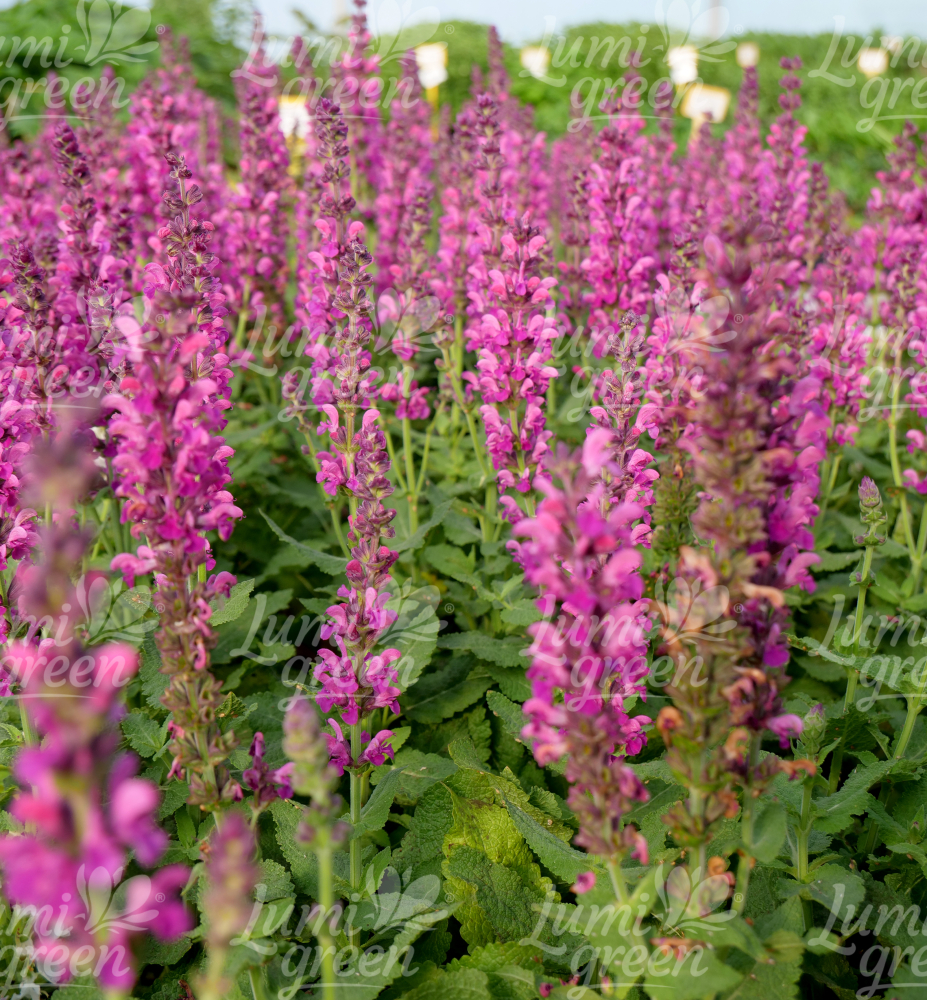 Anbau: Salbei ist eine pflegeleichte Staude, die nach dem Anwurzeln auch vorübergehende Trockenheit gut verträgt. Er bevorzugt durchlässigen Gartenboden und einen sonnigen bis halbschattigen Standort. Er ist eine hervorragende Pflanze für gemischte Staudenbeete dank ihrer üppigen und langanhaltenden Blüte. Er bildet einen gleichmäßigen Horst, der nach der Blüte zurückgeschnitten werden kann, um eine erneute Blüte zu fördern.