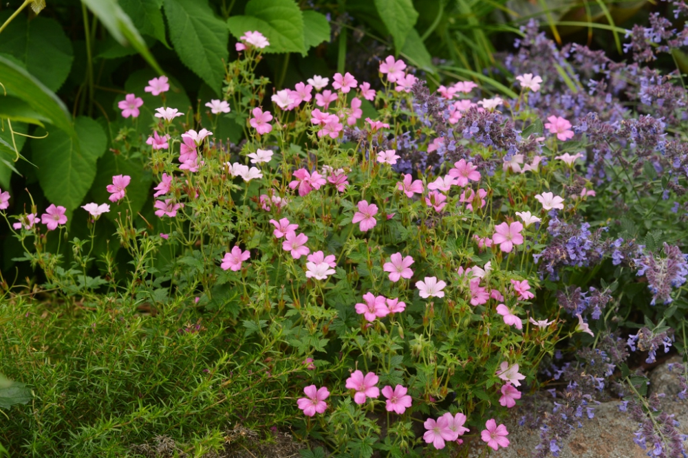 Anspruchslose Bodendeckerstaude mit einer Fülle zartrosa Blüten.