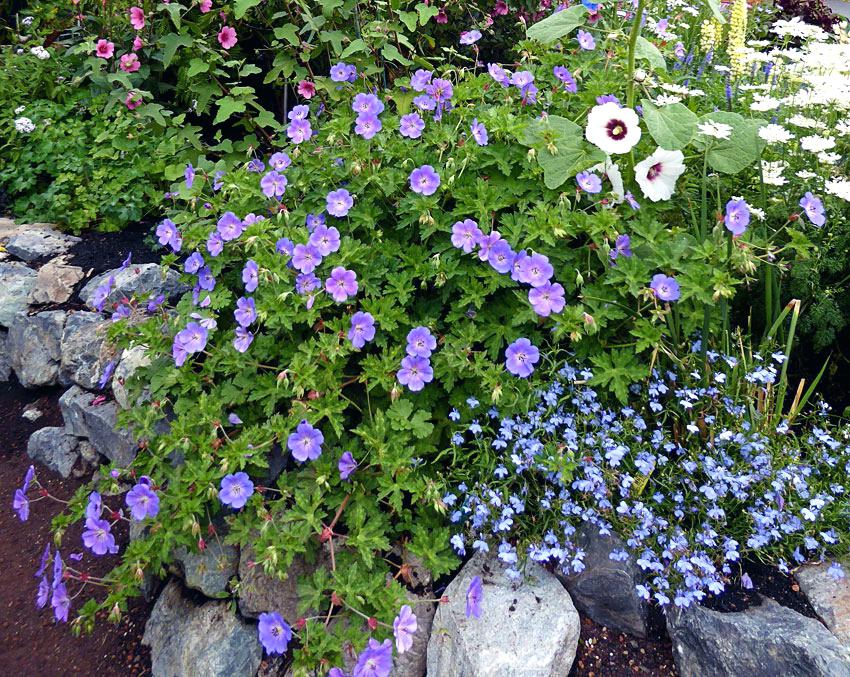 Anbau: Der Storchschnabel ist eine sehr pflegeleichte, langlebige Staude, die kaum von Krankheiten oder Schädlingen betroffen ist. Häufig wird sie zur Anlage blühender Teppiche verwendet. Sie wächst relativ schnell, sodass der farbenprächtige Blüh-Effekt schon kurz nach der Pflanzung sichtbar wird. Gepflanzt wird sie in durchlässige Gartenböden an sonnige bis halbschattige Standorte.