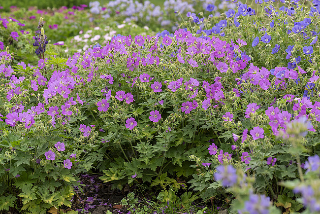 Anbau: Storchschnabel ´SIRAK´ ist eine sehr dankbare, langlebige Staude, die weder von Krankheiten noch von Schädlingen befallen wird. Sie wächst relativ schnell, sodass die farbenfrohen Blüten schon bald nach der Pflanzung sichtbar werden. Sie zieht Bienen und Schmetterlinge an. Wir pflanzen sie in durchlässige Gartenerde in der Sonne oder im Halbschatten. Sie verträgt gelegentliche Trockenheit und Nässe. Um die schöne Form des Horstes zu erhalten und eine erneute Blüte zu gewährleisten, muss der gesamte Horst nach der Blüte zurückgeschnitten werden.