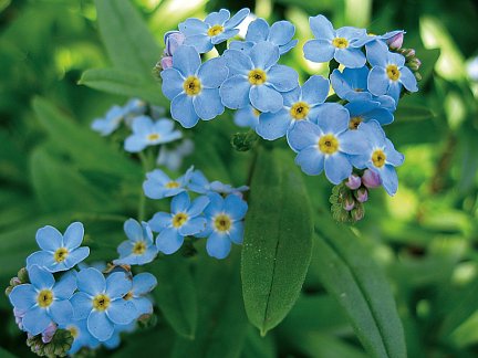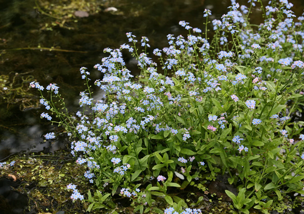 Eigenschaften: Das Sumpf-Vergissmeinnicht wächst in der Natur an schlammigen Gewässerufern sowie auf feuchten, zeitweise überschwemmten Wiesen. Es ist eine etwa 30 cm hohe, feuchtigkeitsliebende Pflanze mit grünen, lanzettlichen Blättern. Von Mai bis Oktober erscheinen zahlreiche himmelblaue Blüten mit gelbem Auge.