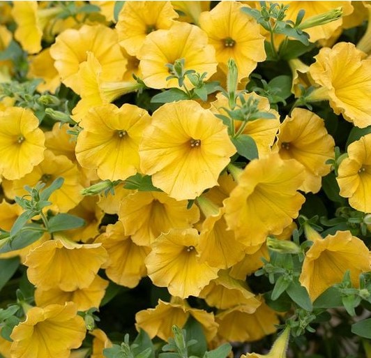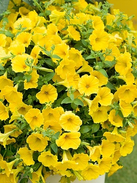 Eine Surfinia, die man sich nicht entgehen lassen sollte – sie blüht in Hülle und Fülle mit leuchtend gelben Blüten.