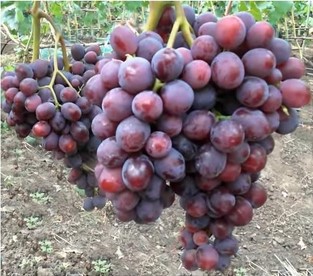 Eigenschaften: Die Weinrebe ´PODAROK NESVJATAJA' ist eine russische Sorte, die bereits Anfang August reift. Die Trauben sind groß, konisch, mitteldicht und können ein Gewicht von 600 bis 1000 g erreichen. Die Beeren sind groß, oval bis kugelförmig und wiegen etwa 8–12 g. Sie sind dunkelrot bis violett gefärbt und mit einer feinen Wachsschicht überzogen. Das Fruchtfleisch ist fest, saftig und knackig, mit einem köstlich süßen Geschmack und einer subtilen Muskatnote. Die Schale ist dünn, aber dennoch fest genug, sodass sich die Beeren gut für den Transport und eine kurzstifte Lagerung eignen. Die Sorte zeichnet sich durch eine gute Resistenz gegen Pilzkrankheiten und eine hohe Frostbeständigkeit aus.