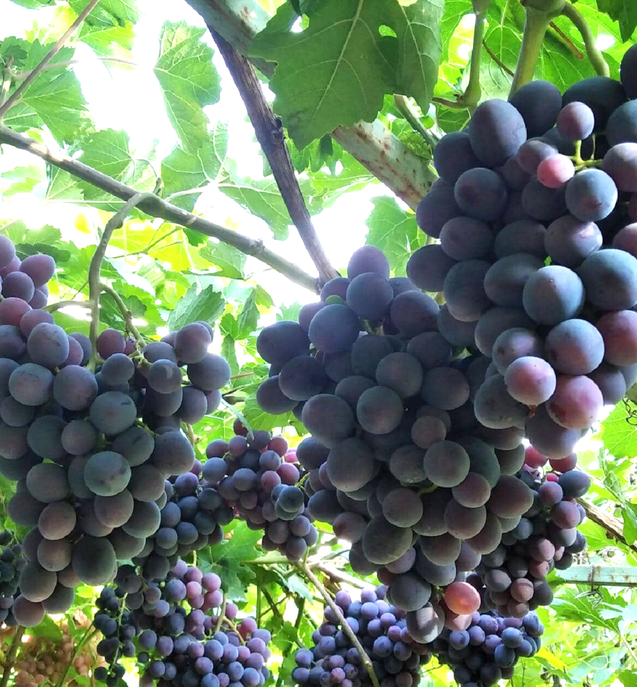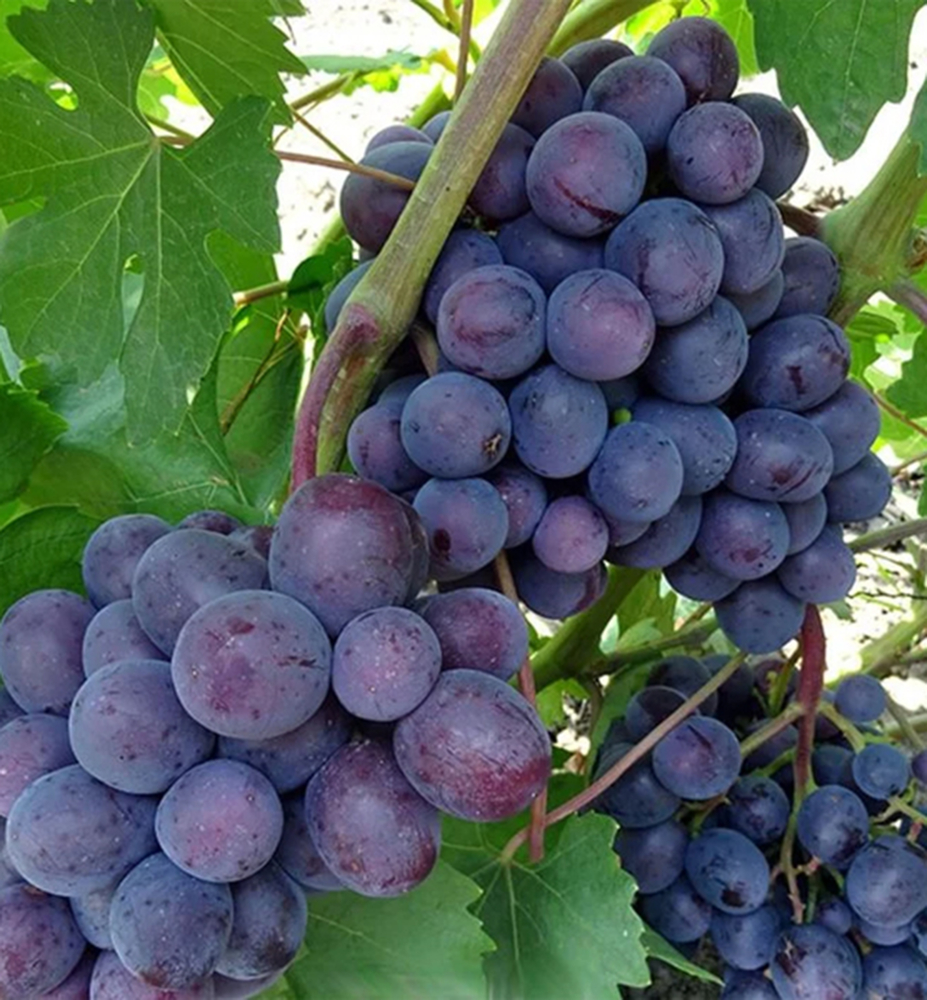 Eine frühe, sehr ertragreiche Sorte mit dunklen Früchten und süßem Muskatgeschmack.