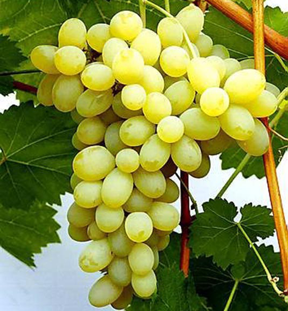 Frostbeständige Rebsorte mit gelben, saftigen, leicht elliptischen Beeren und ausgezeichnetem Geschmack.