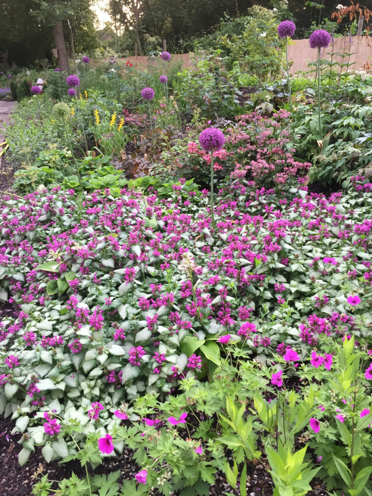 Eigenschaften: Taubnessel ´PURPLE DRAGON´ zeichnet sich durch silbergrüne Blätter mit einem grünen Rand aus. Die Blätter sind herzförmig. Von Mai bis September blüht es mit markanten violetten Blüten. Es kommt aus Europa und Westasien. Es gehört zu den Bodendeckerpflanzen. Wir platzieren es unter Bäumen oder im Schatten von Hecken.
