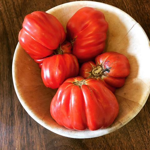 Ertragreiche italienische Tomatensorte mit großen, fleischigen, gerippten Früchten.