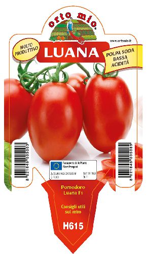 Eigenschaften: Die Tomatensorte ´LUANA´ ist eine mittelfrühe, sehr ertragreiche Sorte. Sie bildet zahlreiche ovale Früchte mit einem Gewicht von 120–140 g, die eine intensive rote Farbe aufweisen. Die Früchte wachsen in Trauben, sind aromatisch, nicht zu wässrig und haben einen niedrigen Säuregehalt. Sie eignen sich für verschiedene Salate, zum Grillen, aber auch als Gemüsebeilage. Die Sorte ist gegen viele Krankheiten resistent.