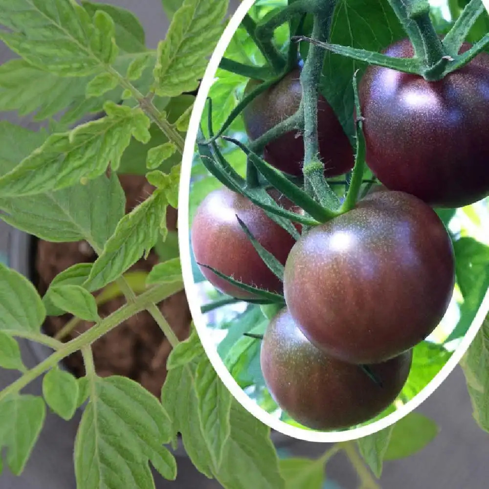 Sehr schmackhafte Cherrytomaten mit dunkelroten bis schwarzen Früchten.