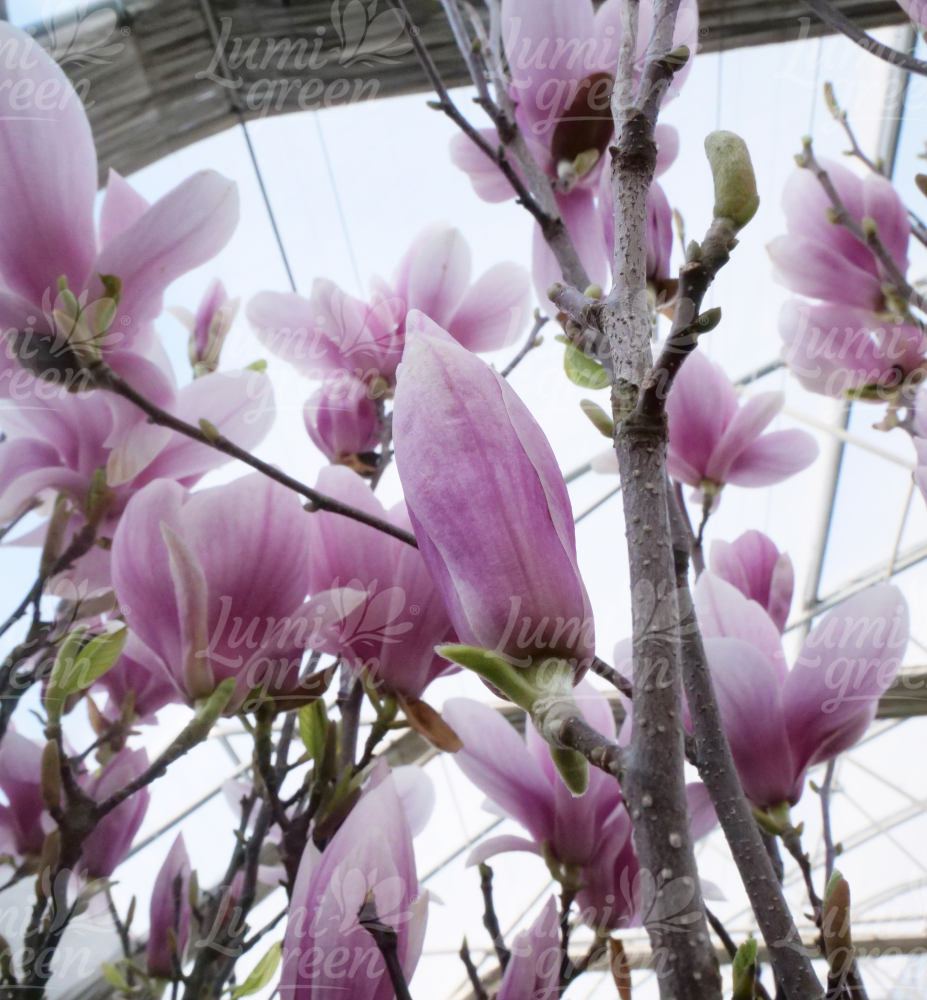 Anbau: Tulpenmagnolie benötigt einen durchlässigen Gartenboden sowie einen sonnigen bis halbschattigen Standort. Sie sollte an einem Platz gepflanzt werden, der ausreichend Raum für die Verzweigung bietet. Die Form kann bei Bedarf durch einen leichten Rückschnitt im Frühling, nach der Blüte, korrigiert werden, wobei vorsichtig vorzugehen ist. Die Pflanze ist bis -30 °C frosthart. Ihre Frostresistenz kann durch eine Mulchschicht verbessert werden, die gleichzeitig die Bodenfeuchtigkeit reguliert.