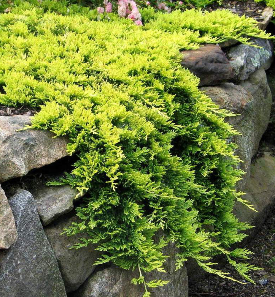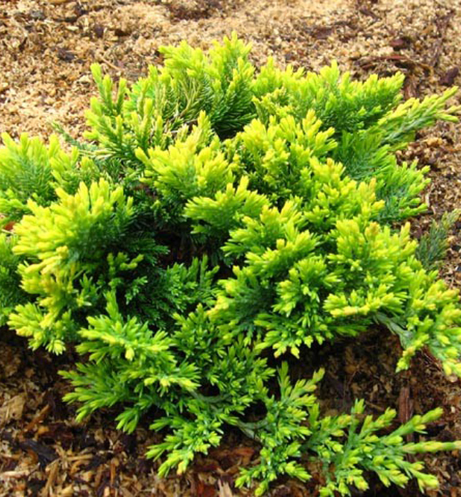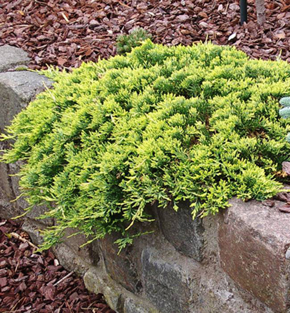 Eigenschaften:Der ausladende Wacholder „GOLDEN CARPET“ ist ein niedriger, stacheliger und bodendeckender Nadelbaum. Im Erwachsenenalter erreicht er eine Höhe von nur 0,2 – 0,3 m und eine Breite von bis zu 1 – 1,2 m. Es bildet einen attraktiven Teppich von grünlich-gelber Farbe, der sich zum Füllen von Flächen, aber auch zum Verstärken von Hängen eignet.