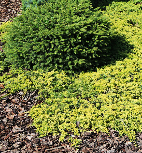 Botanischer Name | Juniperus horizontalis ´Golden Carpet´ |