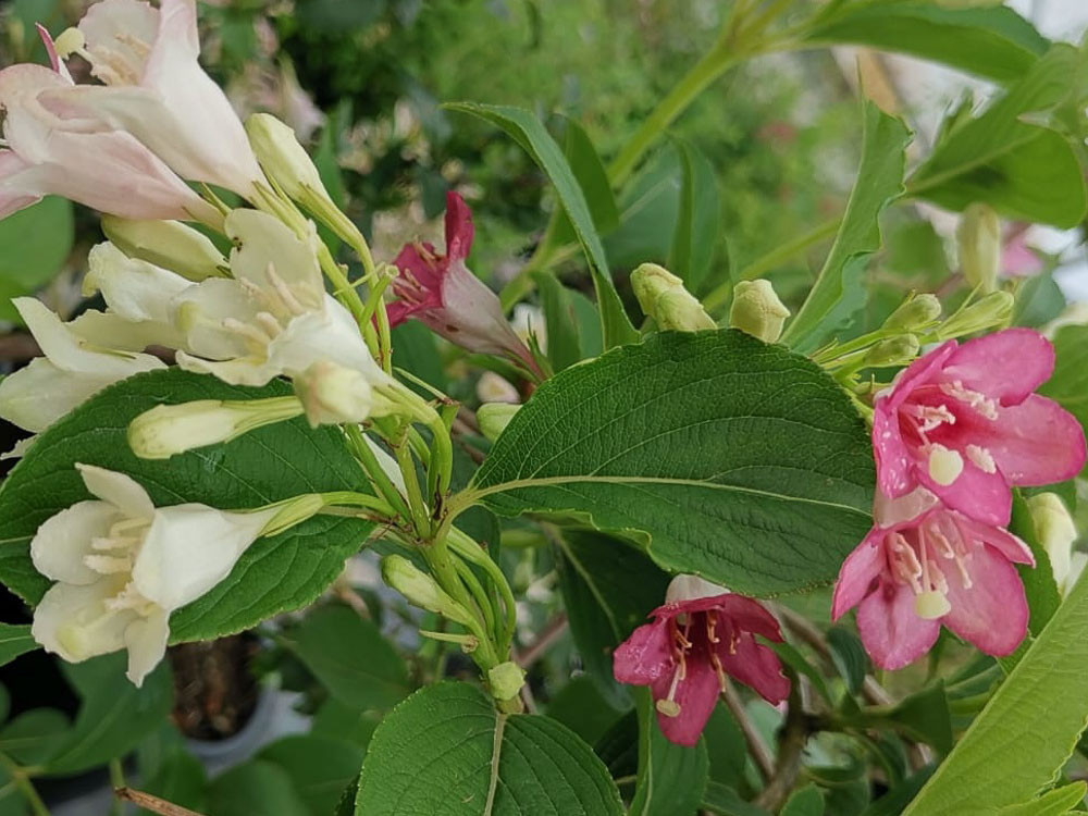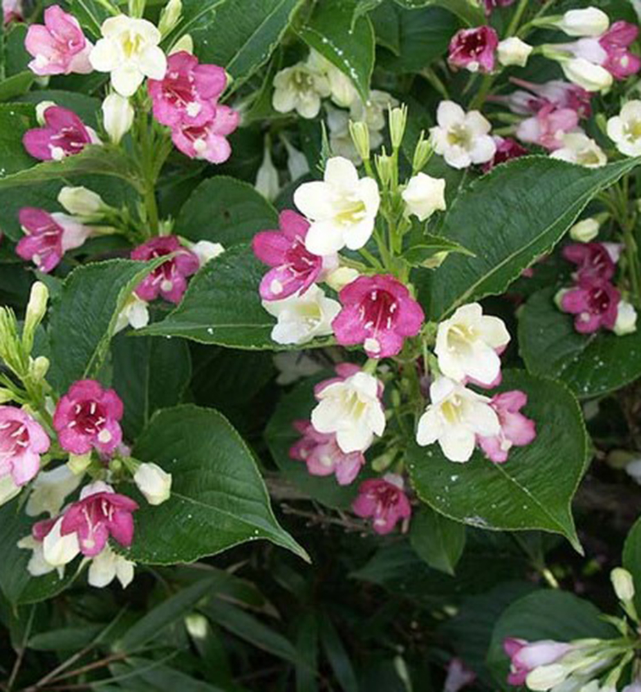 Eigenschaften: Weigelie 'MARJORIE' ist ein sommergrüner Zierstrauch, der sich durch seine reiche und lange Blüte auszeichnet. Er wird etwa 1–1,5 m hoch und bildet einen kompakten, leicht ausladenden Strauch mit luftigem Wuchs. Die Blüten sind besonders dekorativ und blühen von Mai bis Juni, oft auch den ganzen Sommer über. Manche Blüten sind rosa, andere blühen in cremeweißen Tönen. Die Blüten erscheinen in Büscheln und bedecken üppig die gesamten Triebe. Die Blätter sind frischgrün, elliptisch und können im Herbst zartgelb werden. Dank ihrer dekorativen Erscheinung eignet sie sich als Solitärpflanze, in Gruppenpflanzungen oder freiwachsenden Hecken.