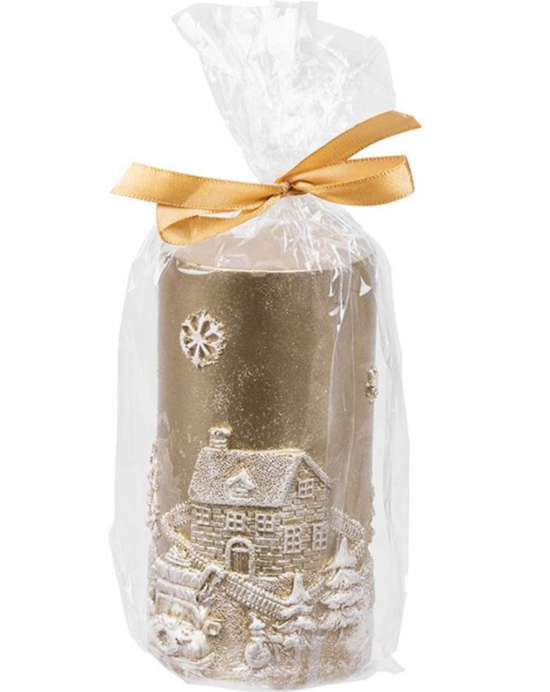- WEIHNACHTS kerze, 7x12,5 cm, Gold mit Landschaft