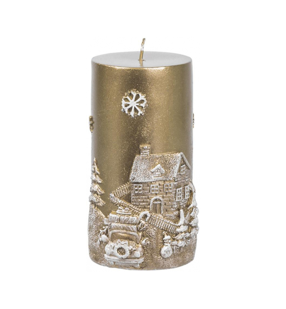 WEIHNACHTS kerze, 7x12,5 cm, Gold mit Landschaft