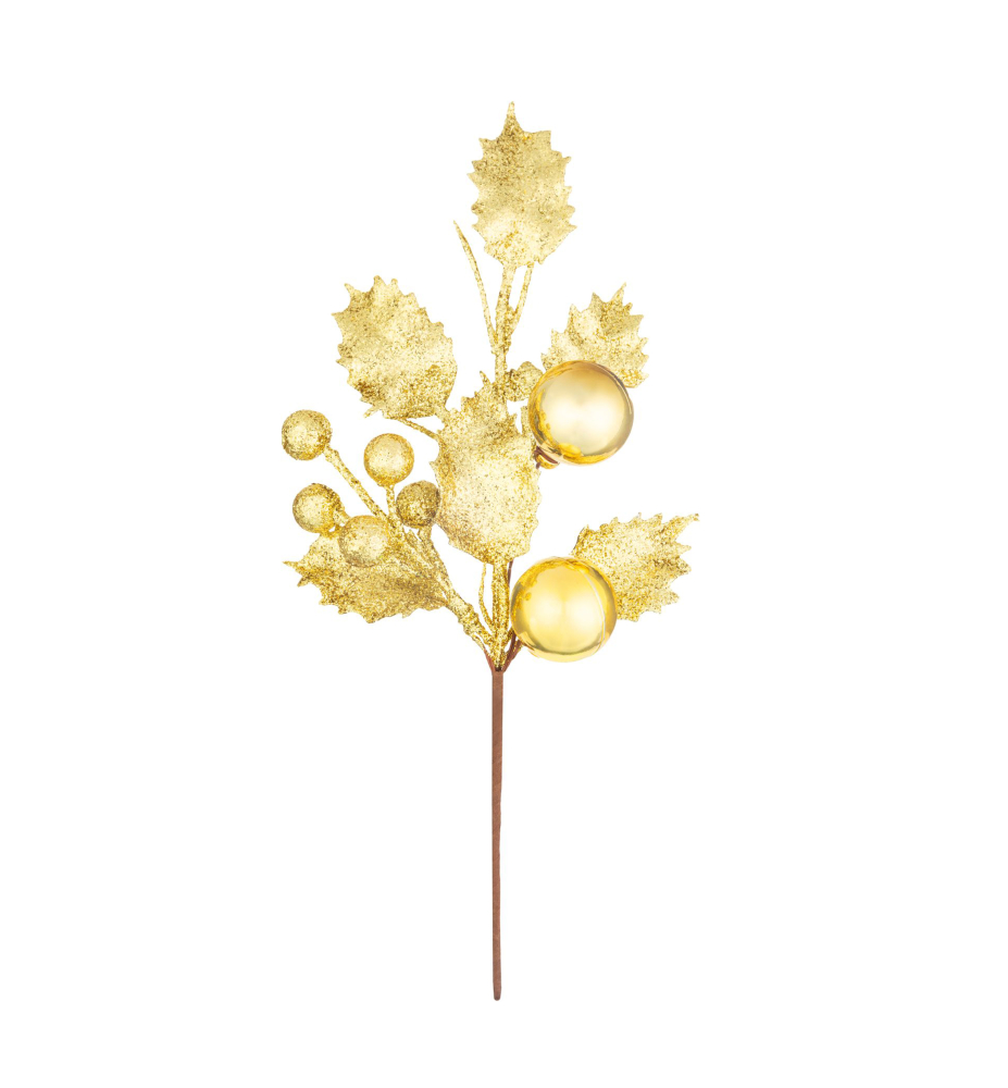 - Weihnachtszweig, Stechpalme, Gold, 24 cm