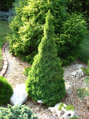 Eine neue Miniaturfichte mit sehr kompaktem, schmal kegelförmigem Wuchs.