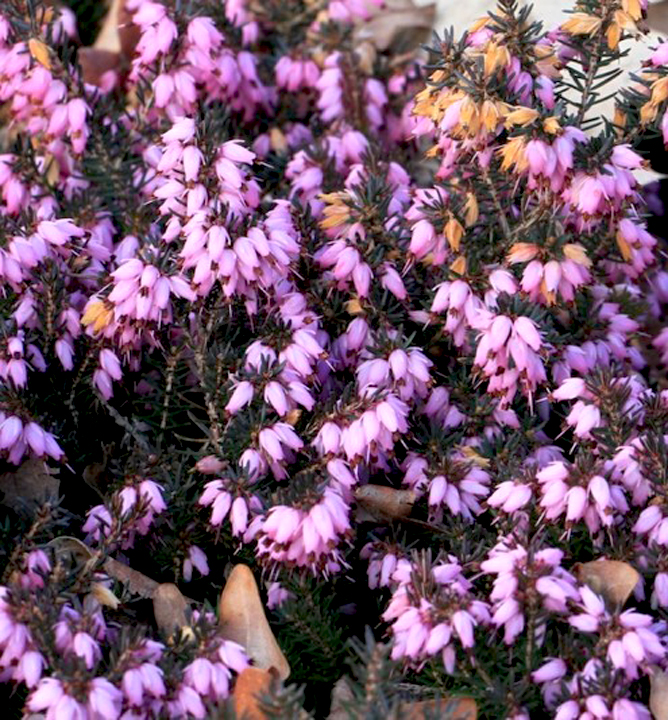 Eigenschaften: Die winterblühende Heide ‘J. W. PORTER’ ist ein niedriger, immergrüner Strauch, der 20–30 cm hoch wird. Feine, dunkelgrüne Blätter mit leichtem Bronzeton bilden das ganze Jahr über einen dekorativen Wuchs. Im Winter und frühen Frühling wird dieser durch kleine, glockenförmige Blüten von Hellrosa bis Rosaviolett ergänzt. Sie blüht von Januar bis Mai und bringt Farbe in den Garten, während die meisten anderen Pflanzen ruhen. Die Pflanze eignet sich auch für Heideflächen und Steingärten.