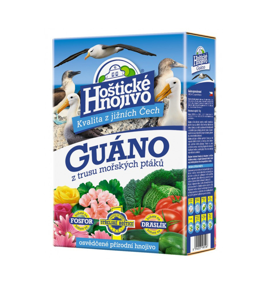 Eigenschaften: Guano ist ein rein natürlicher Rohstoff, der durch die Mineralisierung von Vogelkot an der Küste Südamerikas entstand. Aufgrund seiner Zusammensetzung wird es seit Jahrhunderten von den Einheimischen in der Landwirtschaft als hervorragender natürlicher Dünger genutzt. Die Granulatform hat den Vorteil einer längeren, schrittweisen Wirksamkeit sowie einer genauen und gleichmäßigen Dosierung. Guano versorgt Pflanzen während der gesamten Vegetationsperiode mit den notwendigen Nährstoffen in einer Form, in der die Nährstoffe gut vom Wurzelsystem aufgenommen werden. Da es sich um einen natürlichen Rohstoff handelt, schadet es bei richtiger Dosierung weder Pflanzen noch dem Salzgehalt des Bodens. Der Boden behält so seine Luftigkeit und Fruchtbarkeit. Die Verbesserung der Eigenschaften des Düngers wird auch durch einen bestimmten Gehalt an Kakaobohnenschalen erreicht, die sich besonders günstig auf den Wasserhaushalt auswirken.