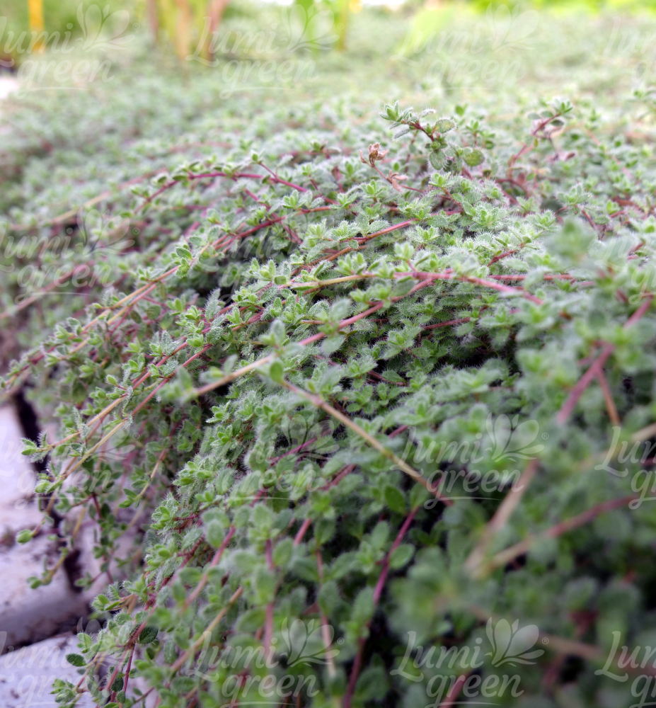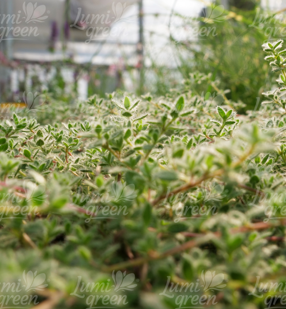 Eigenschaften: Wolliger Thymian ist eine besondere Sorte, die sich durch ein geringes und schnelles Bodendeckerwachstum auszeichnet. Es bildet dichte Teppiche aus graugrünen Blättern, die mit feinen Härchen bedeckt sind. Diese erwecken den Eindruck, als wären sie versilbert. Im Frühsommer blüht es mit einer Flut honigrosa Blüten. Er wird bis zu 5 cm hoch und wird auch als Rasenersatz verwendet.