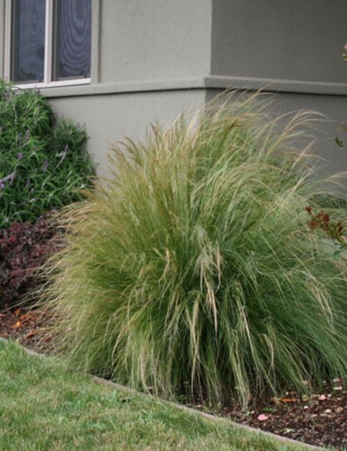 Anbau: Zartes Federgras gehört zu den anspruchslosen Ziergräsern. Er eignet sich für trockenere, durchlässige Gartenböden und einen sonnigen Standort. Wir schneiden das Bündel nicht im Herbst, sondern erst im Frühjahr nach dem Ende des Frosts auf eine Höhe von 5-10 cm.