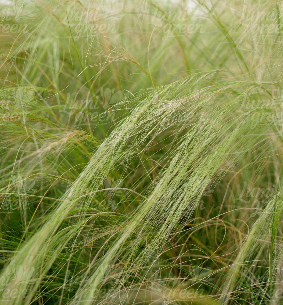 Eigenschaften: Zartes Federgras ist ein dürreliebendes Gras und kommt natürlicherweise in Mexiko, Argentinien und Chile vor. Die Sorte ´PONY TAILS´ ist ein sehr beliebtes Ziergras, da sie das ganze Jahr über eine ästhetische Wirkung hat. Es produziert ein Büschel feiner, fadenförmiger Blätter von hellgrüner Farbe. Zur Blütezeit bildet sie eine frische Rispe aus weißbraunen Blüten, die bei jedem Windstoß wehen. Sie wird etwa 40–60 cm hoch. Dank seiner attraktiven Blätter und Blüten sorgt es für einen interessanten Effekt bei Gruppenpflanzungen, bei denen mehrere Pflanzen nebeneinander gepflanzt werden.
