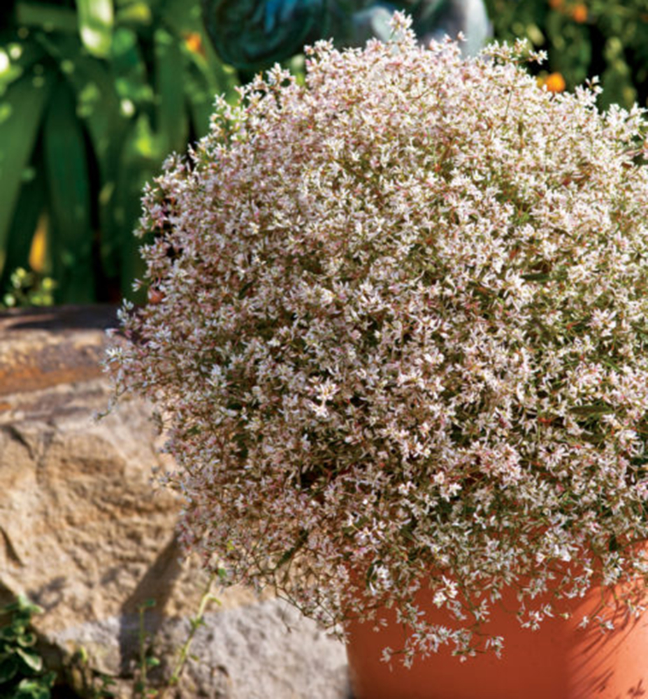 Eigenschaften: Zauberschnee ´STARBLAST PINK´ ist eine anspruchslose, einjährige Pflanze, die aus den südlichen Regionen Nordamerikas stammt. Der Name „Starblast“ – Sternenexplosion – deutet bereits an, was diese Pflanze so außergewöhnlich macht, und jeder Gärtner kann sich im Sommer selbst davon überzeugen. Sie bildet eine Fülle von hell- bis intensivrosa Blüten in Sternform. Die Pflanze besticht durch ihre feine Struktur aus hellgraugrünen Blättern. Sie wirkt sowohl als Solitärpflanze als auch in Kombination mit anderen einjährigen Pflanzen sehr ansprechend.