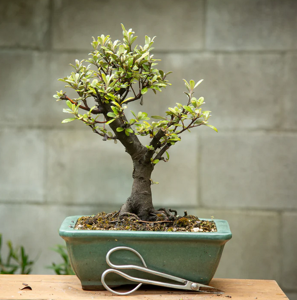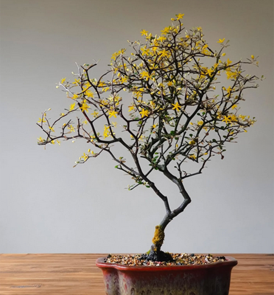 Ein einzigartiger Strauch mit drahtigen Trieben und graugrünem Laub, ideal für die Bonsai-Gestaltung.
