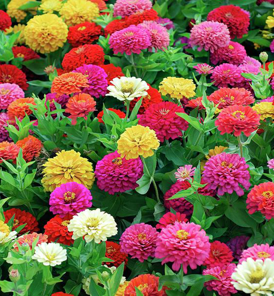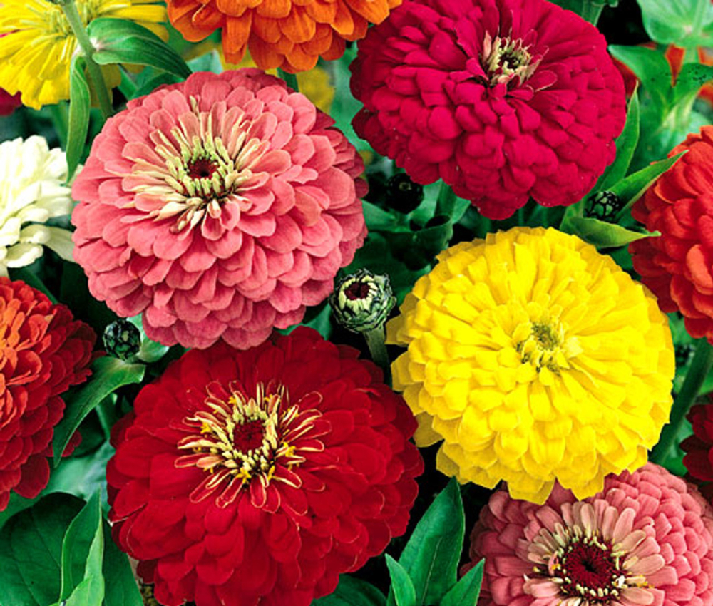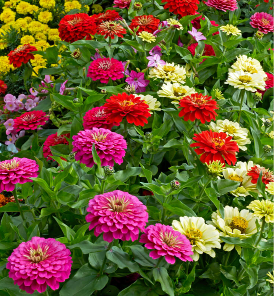 Eine attraktive Mischung beliebter Zinnien in leuchtenden Farben verschönert Sommerbeete und eignet sich hervorragend für Blumensträuße.