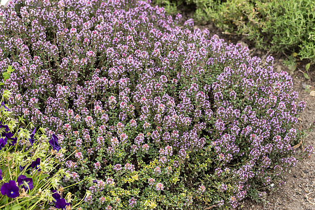 Eigenschaften: Zitronen-Thymian ´SAMBESI´ ist eine äußerst beliebte aromatische Staude. Die Sorte kommt natürlicherweise in Europa, Asien und Afrika vor. Es zeichnet sich durch ein starkes Zitronenaroma und eine wirkungsvolle Gelbfärbung an den Rändern der grünen Blätter aus. Im Herbst können sie bronzefarbene Reflexe annehmen. Die Sorte bildet niedrige, kompakte Polster, die ab Juni mit rosa-violetten Blüten blühen.