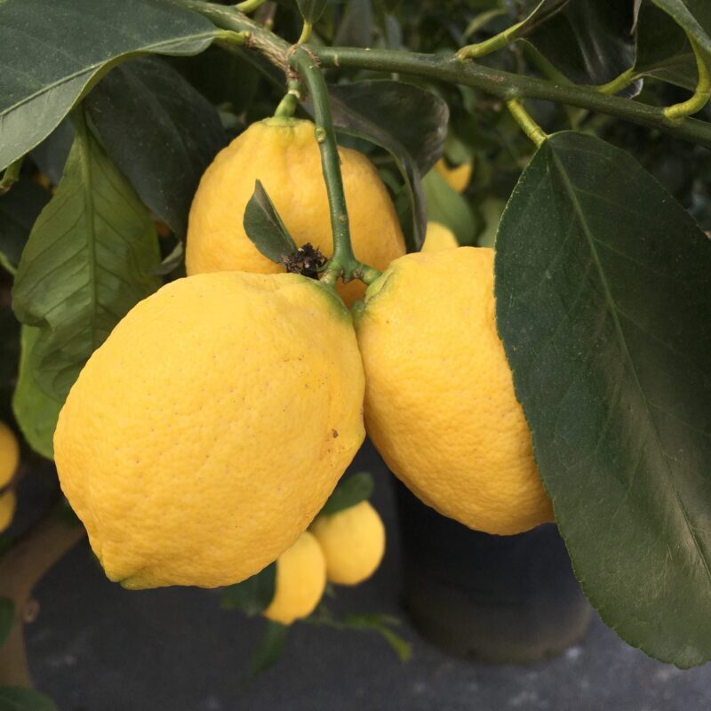 Eigenschaften: Der Zitronenbaum „SIRACUSANO“ ist eine italienische Sorte aus der Gegend von Syrakus. Er zählt zu den am häufigsten in Italien angebauten Arten. Er ist eine Mutation der Art Femminello und zeichnet sich durch größere Früchte (130–160 g) aus, die das ganze Jahr über an der Pflanze erscheinen. Die Früchte zeichnen sich durch einen hohen Saftgehalt, eine größere Anzahl an Kernen und hochwertige ätherische Öle aus der Schale aus. Sie haben eine kugelig-elliptische Form, eine tiefgelbe Schale und zitronengelbes Fruchtfleisch. Er wächst als immergrüner Baum mittlerer Höhe, dessen Triebe dornenlos oder nur mit wenigen kleineren Dornen bestückt sind.