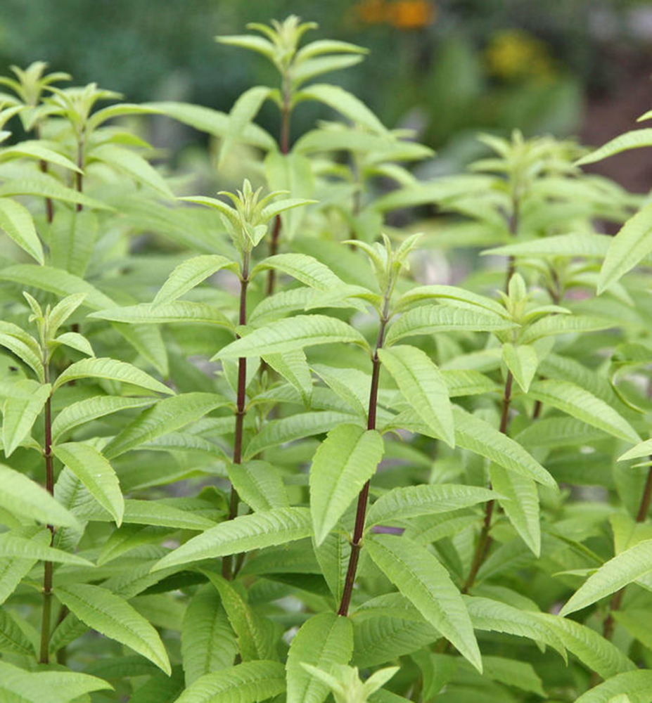 Eigenschaften: Die Zitronenverbene ist eine Heilpflanze, die ursprünglich aus Südamerika stammt. Sie besitzt schmale, lanzettliche, hellgrüne Blätter mit einem intensiven Zitronenduft. Die Blätter wachsen in Dreierquirlen und werden bis zu 10 cm lang. Anfang Juli blüht die Pflanze mit kleinen, blassvioletten bis weißen Blüten. Sie erreicht eine Höhe von bis zu 1,5 m. Die Zitronenverbene ist außerdem für ihre beruhigende und wohltuende Wirkung bekannt und unterstützt die Verdauung sowie den Appetit.
