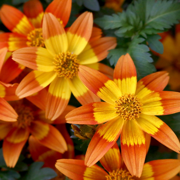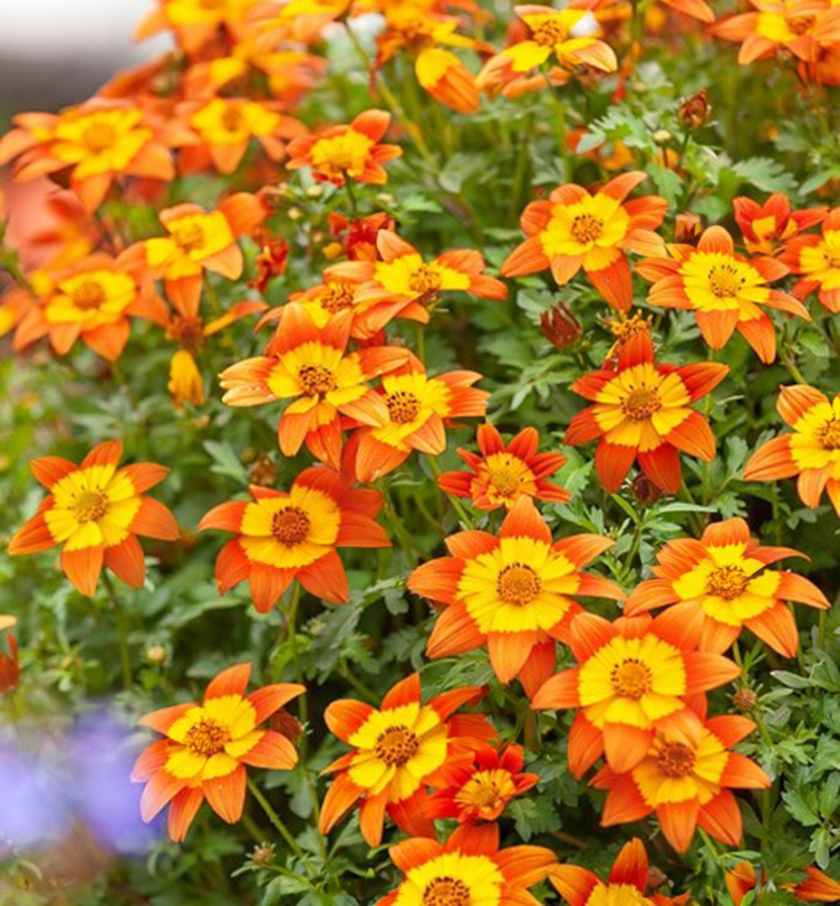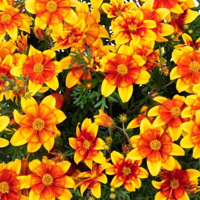 Eigenschaften: Der Zweizahn ´BIDY BOOM FIRESIDE´ besticht durch seine zweifarbigen Blüten in Orange und Gelb. Er blüht zuverlässig und üppig während der gesamten Saison. Die Blüten sind attraktiv für Bienen und Schmetterlinge. Die Blätter sind frischgrün und tief gelappt, was der Pflanze ein zartes und attraktives Aussehen verleiht. Die Pflanze hat einen kompakten, halbhängenden Wuchs und eignet sich hervorragend als Füllpflanze. In den letzten Jahren hat sich der Zweizahn zu einer sehr beliebten Sommerblume für Balkonkästen und Hängeampeln entwickelt. Außerdem ist er auch gegen niedrigere Temperaturen widerstandsfähig.