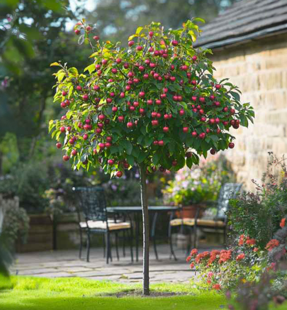 Eigenschaften: Die Mini-Sauerkirsche ist eine kompakte Sorte, ideal für kleine Gärten, Balkone oder Terrassen. Dank ihrer geringen Höhe (ca. 1–1,5 Meter) eignet sie sich hervorragend für die Topfkultur und liefert dennoch reichlich saftige Früchte. Diese erscheinen ab Juli am Baum, sind rund und besitzen eine intensiv rote Schale. Das Fruchtfleisch ist saftig und leicht säuerlich. Neben der Fruchtbildung ist die Sauerkirsche auch ein attraktiver Zierbaum, insbesondere während der Blütezeit.