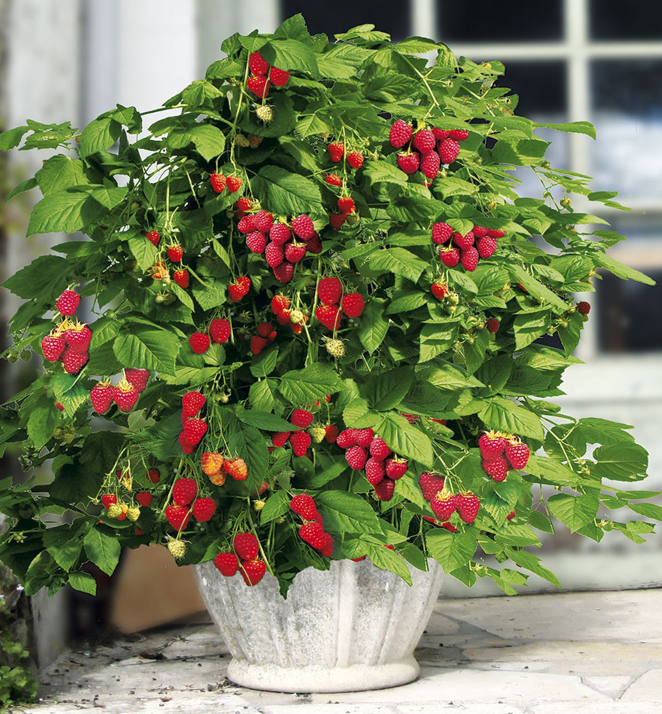 Eigenschaften: Die Himbeere 'LITTLE SWEET SISTER' ist eine kompakte, dornenlose Sorte, die ganzjährig Früchte trägt. Sie wird 60-100 cm hoch und eignet sich ideal für den Topfanbau auf Terrasse oder Balkon. Die Früchte sind rosarot und aromatisch-süß. Der Ertrag einer erwachsenen Pflanze beträgt bis zu 1,5 kg.