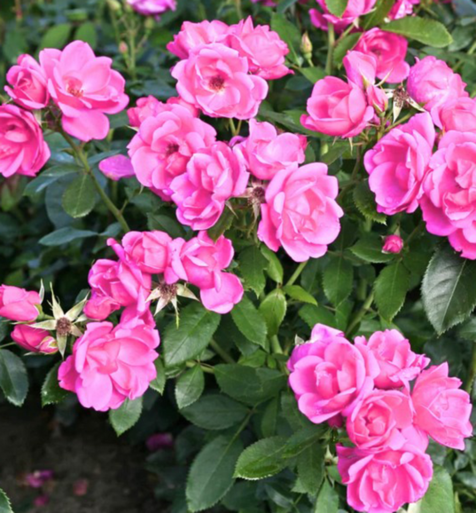 Eigenschaften: Die Miniaturrose 'PINK' ist ein niedriger Zierstrauch mit dichtem, kompaktem Wuchs. Ihre kleinen, gefüllten bis halbgefüllten Blüten leuchten in verschiedenen Rosatönen. Sie blüht vom späten Frühling bis in den Herbst. Die Pflanze wird etwa 30 bis 40 cm hoch und breit. Miniaturrosen werden häufig in Kübeln, auf Balkonen oder an Beeträndern gepflanzt, wo sie niedrige, reich blühende Einfassungen bilden.